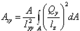 Qy is the first moment of the cross-sectional area to be sheared by a force in the y direction. lz is the cross section dimension in the z direction. Iyy is the area moment of inertia about the beam y-axis. To neglect shear deformation in the y-direction, set ASY=0. ASY ≥ 0