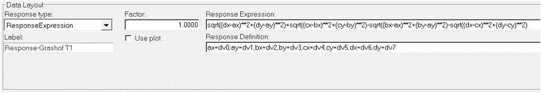 In the above example, the response variable computes an expression (Grashof Constant T1) involving distances between points whose coordinates are design variables.