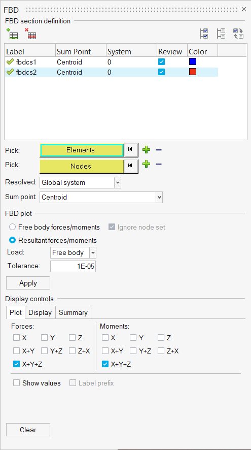 - Element based sections are defined and modified in this first step of the process. You can define multiple sections, associate elements, associate a node group (optional for resultant summation), or define other attributes (like a summation point, a coordinate system, etc.).