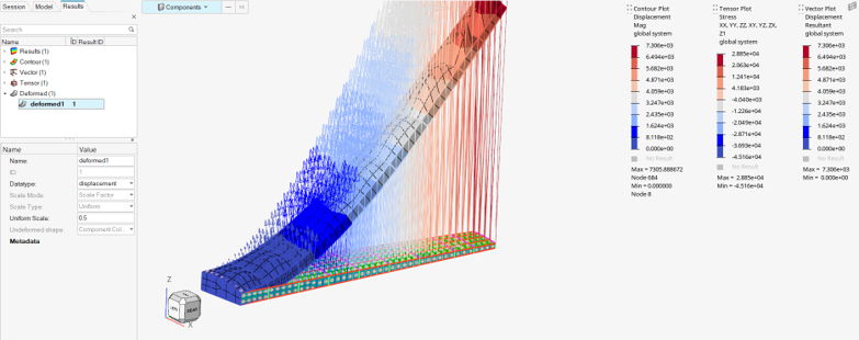 • Plots are based on the current load case and step, which can be reviewed and updated from the status bar or the browser.