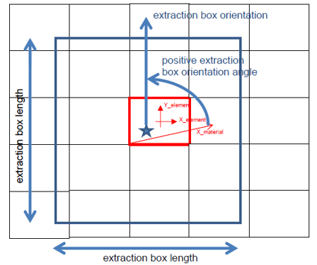 The extraction box is aligned with a pierced shell's material system as described above; hence, the parameter Material Angle allows you to rotate the box from the X axis, calculated as per the Resolved-In option. The parameter Point per edges samples points per edge.