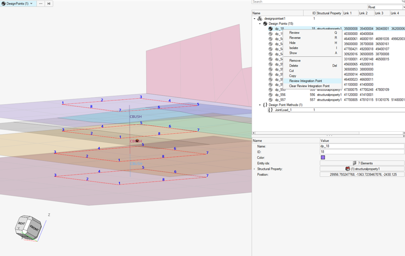 The Rivet config is shipped with an internal method called JointLoad. This method determines the load transfer through bolted connections and the associated bypass and bearing loads in the adjoining plates. The JointLoad method extracts the internal loading in the plates and bolts of concern. The extracted data can either be: