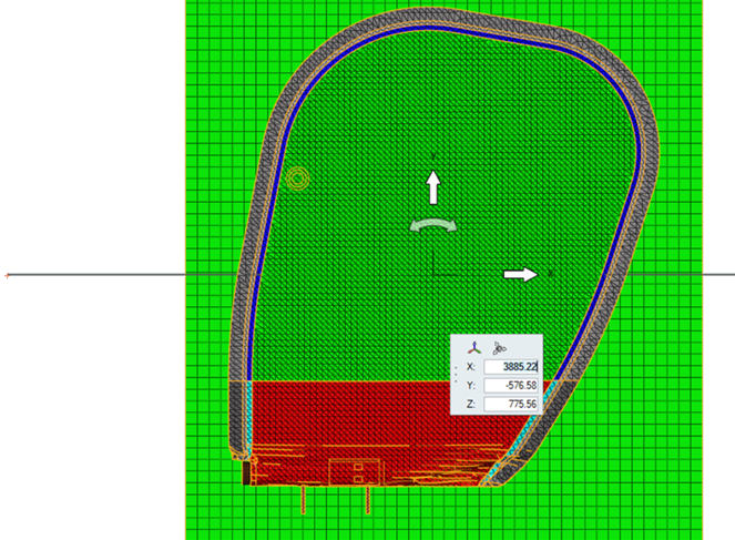 6. Once the selection is made, a line appears in the modeling window. Using the arrows, you can change the position of the folding line by rotating it or translating it.