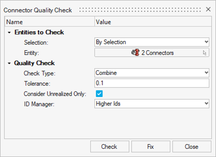 Use the Quality controller to perform various checks on connectors and realized FE.