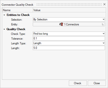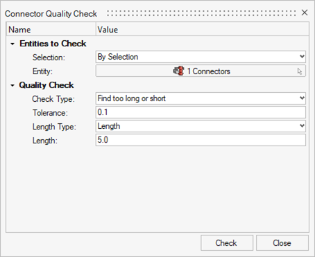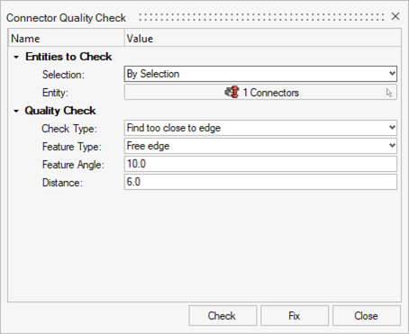 The Quality controller is used to determine if the model contains duplicate connectors or if the realized elements meet the quality requirements such as the length of 1D elements and their perpendicularity to the shells they connect.