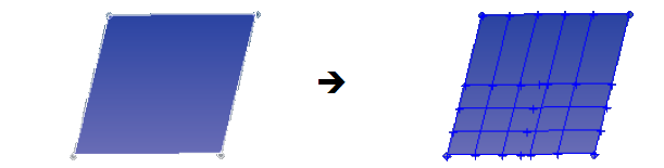 - 1D elements drawn on FE geometry remesh the surface; on CAD geometry, they imprint an edge.