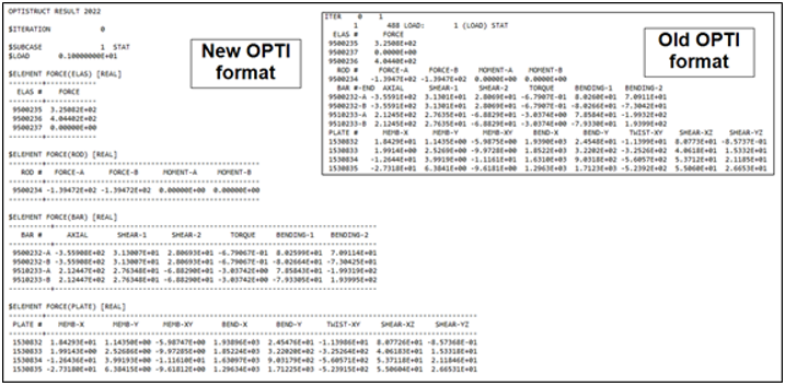 The figure below compares the old and new OPTI formats using ELFORCE (.force) as an example, which has improved readability.