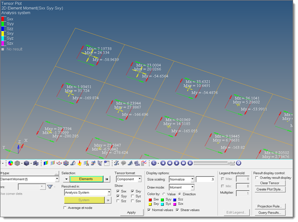 - Mx and My are the bending moments acting on the x and y faces of the 2D element below and are represented by the XX and YY components in the Moment drawing mode of the tensor plot in HyperView.