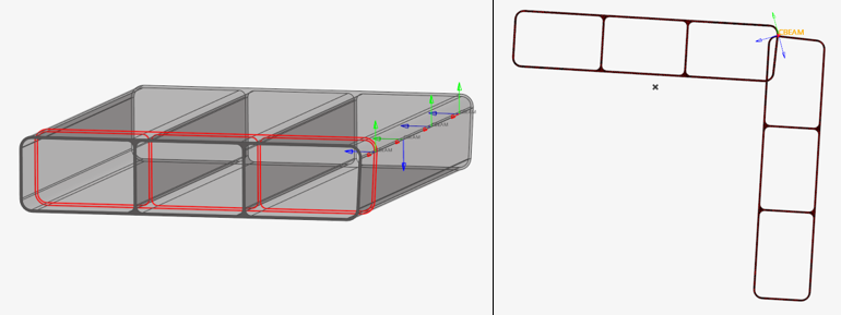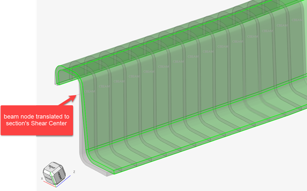 Since a cut is performed per element in Figure 13, each section has its own local system matching the elemental system, as shown in Figure 14 & Figure 15. The origin of the system, from which Centroid and Shear Center coordinates are saved in the beam section entity, is taken at the center of the bounding of the section in the local system.