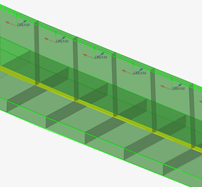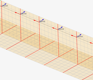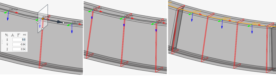 After proceeding, a 3D detailed visualization of updated beams shows the resulting beam cross section taking into account orientation and offset.