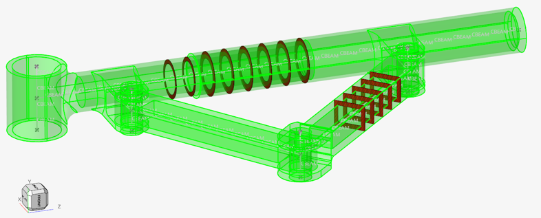 After sectional properties are calculated accounting for all isotropic materials, a regular homogeneous beam property is created referring to a single (homogenous) material and an elastic beam section. Regions without a material assigned or with non-isotropic materials (card image other than MAT1) raise a warning. If you continue, such regions will have a material assigned following the “Default material” rule set in the options menu.