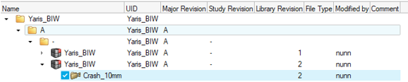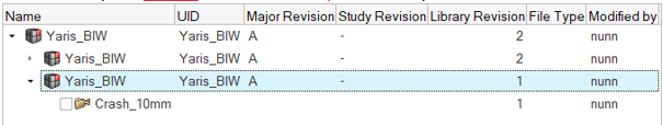 For example, for front crash analysis you will want greater model fidelity in the front bumper, so you can load "Crash_5mm" representation versus assembling a rear crash model where the level of detail is not required and so you may want the "Crash_10mm" representation loaded instead.