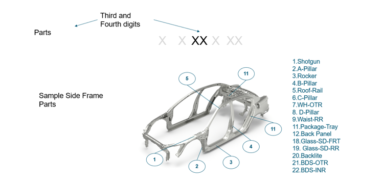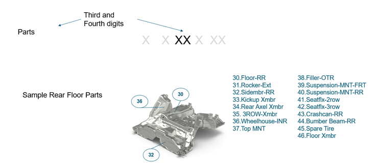 An example of the numbering scheme implemented on the left-hand side rocker/sill section can be seen in Figure 7