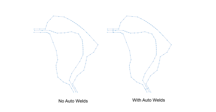 - Geometric lines representing the shape of the section that can be used for concept modeling. The geometric sections are not auto-welded at the flanges.