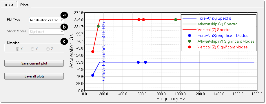 - Choose Acceleration vs. Frequency to display a line chart, which is only available after shock spectra calculation.