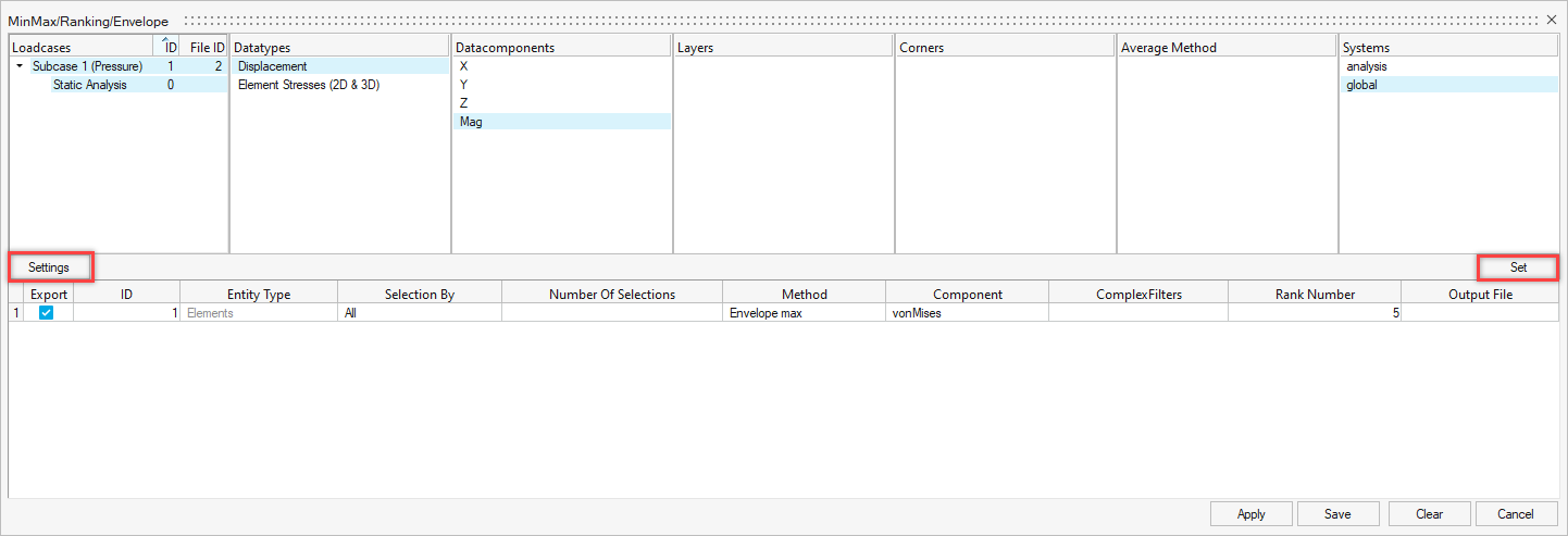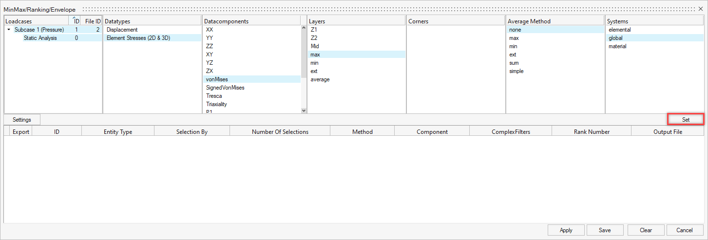 Figure 8. - In the MinMax/Ranking/Envelope dialog, select Static Analysis and Element Stress (2D & 3D).