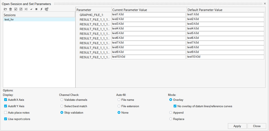 - Overlay mode combines report animations and plots for comparison in the session. Report definitions with different names can be overlaid if they have the same layout, which means the same number of pages, where each page has the same page layout and the same number of applications per window. If the report layout does not match, the report is added to the end of the session.