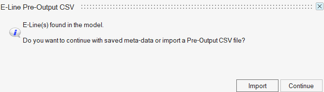 The latter option is only available for .hm files. Restriction: Existing E-Lines in a Solver Deck can not be restored without a pre-output CSV file, which can only be created at Export. Save the progress in the .hm file.