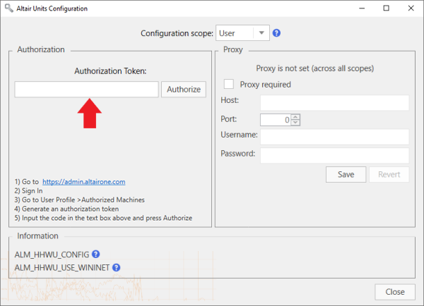 In the Altair Units Configuration screen that displays, enter the Authorization Code you received in Step 3 into the field provided and then click Authorize.