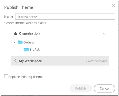 23. Select the folder or subfolder that you have a permission to publish the workbook theme.