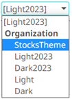 The default general colors will be based on the theme being modified. For the Light theme, it is named GeneralColorsLight, for the Dark theme, it is named GeneralColorsDark, for the styles of older workbooks, it is named GeneralColors<Workbook> (e.g., GeneralColorsHow To Actions), and for the new themes, it is named General<theme name>. These default general colors cannot be deleted.