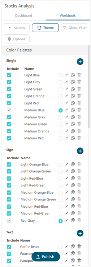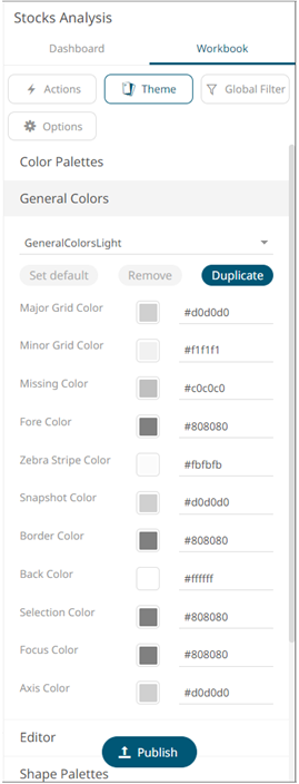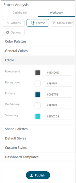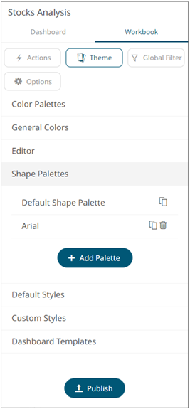 13. To set the shape palettes that can be used with the workbook theme, click the Shape Palette section to expand.