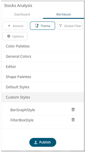 16. To modify the custom style configuration of the parts in the workbook, click Custom Styles to expand.