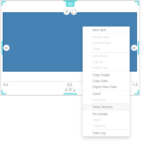 When adding a visualization part, the shelves are turned off by default. To display the shelves, right-click on the visualization and select Show Shelves on the context menu. The corresponding shelves of the visualization are displayed (e.g., Columns, Rows, Breakdown). |