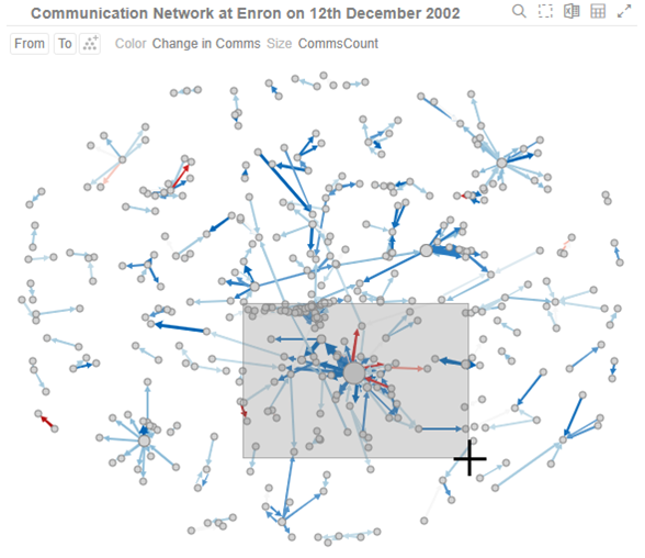 Rubber Band Selection allows multiple items to be selected or lassoed by defining an area with the mouse. When selected, the mouse pointer is displayed as a crosshair. Clicking and dragging the mouse defines the selected area in grey. Once confirmed the selected items are highlighted. This selection option is available in the Network Graph visualization.