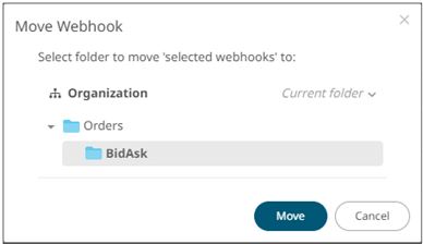 The Move Webhook dialog displays with the folder or subfolders that the user is allowed to move the webhooks. Select the folder or subfolder.