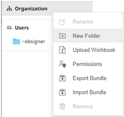 1. On the Workbooks tab, right-click on the topmost folder, and select New Folder.