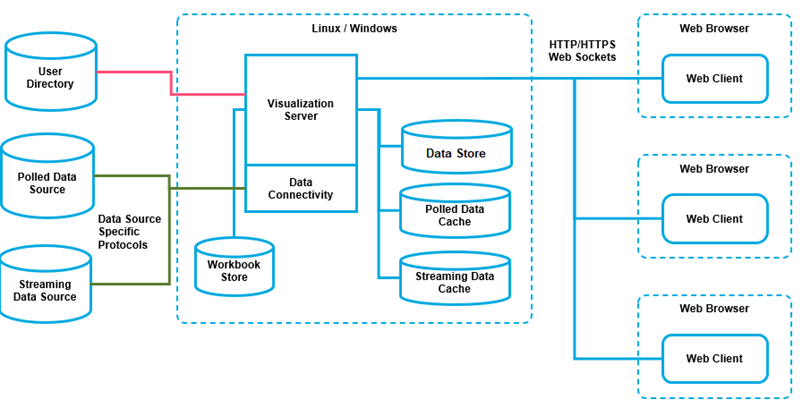 Panopticon Real Time is deployed and hosted on an internal network. The server can be accessed from internally and/or externally from the internet. Upon allowing access to the server from the internet it is recommended to have a proxy and firewall in front of the server.