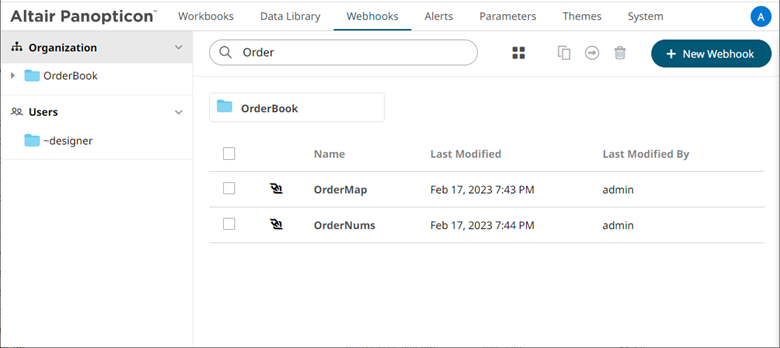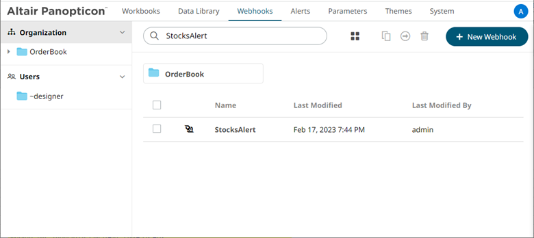 You can also enter one of more characters into the Search Webhooks box then click Enter. The suggested list of webhooks that matched the entries will be displayed.