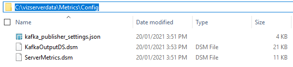 Metrics are published to a file on disk located in the AppData/Metrics/  folder (i.e., c:\vizserverdata\Metrics).