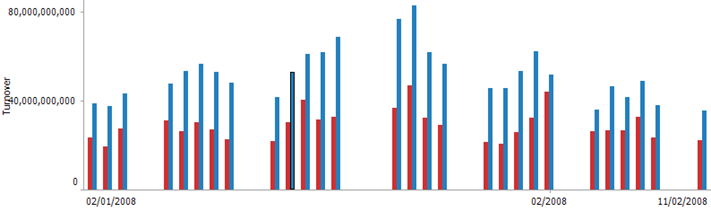 Figure 3-33. Stacked needle graph (Net volume through aggregation – Buy/sell).