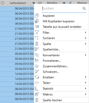 Wenn Sie schnell einen Vorgang finden möchten, der auf die ausgewählte Spalte angewendet werden soll, können Sie mit der Suchleiste danach suchen.