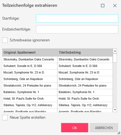 Wenn Sie diesen Vorgang ausführen, werden Sie zunächst aufgefordert, die Zeichenfolge zu starten, um mit dem Extrahieren zu beginnen, und sie zu beenden, um die Extraktion zu beenden. Sie können die Anwendung anweisen, die Klein- und Großschreibung des Textes zu ignorieren, indem Sie das Kontrollkästchen Fall ignorieren aktivieren.