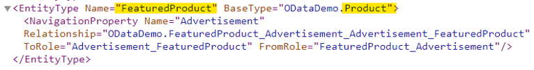 Basierend auf den Metadaten ist der Basistyp von FeaturedProduct Product\