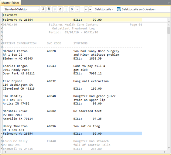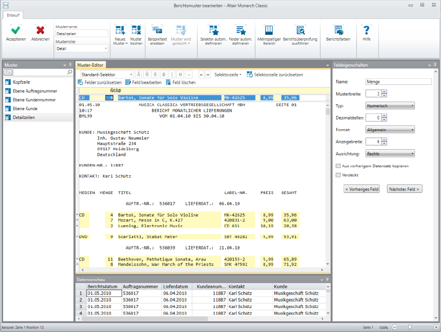 Extrahierte Daten in Monarch Classic