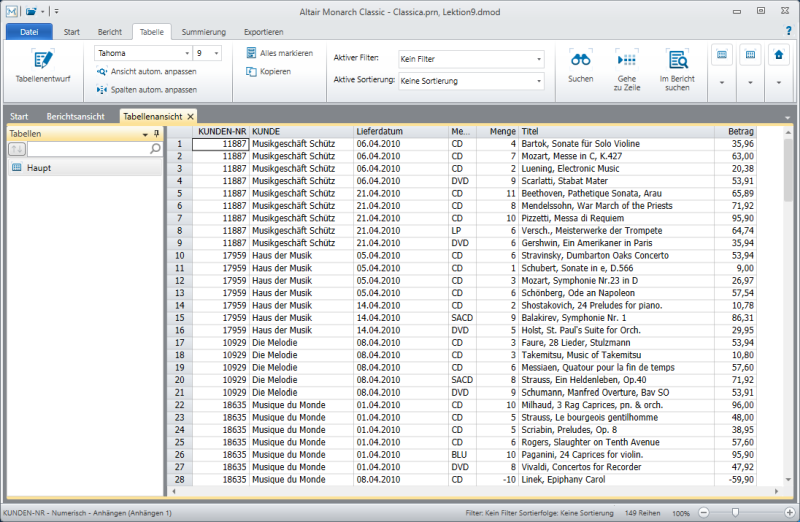 Jede Detailzeile aus dem Bericht erzeugt in der Tabelle einen Datensatz.