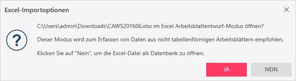 Ziehen Sie das Excel-Arbeitsblatt nach Monarch Data Prep Studio und wählen Sie Ja aus, wenn das Dialogfeld Excel-Importoptionen angezeigt wird: