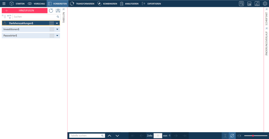 Sie können das Dialogfeld Zugangsdaten bearbeiten ebenfalls aufrufen, indem Sie den Arbeitsbereich öffnen, zum Fenster Vorschau wechseln, eine Tabelle auswählen, für die eine Vorschau angezeigt werden soll, und dann auf Vorschau klicken.