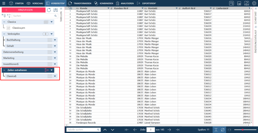 Die neue Tabelle hat den folgenden Namen: <TransformationApplied>, in diesem Fall ExtractRows. Sie können diese Tabelle bei Bedarf umbenennen.
