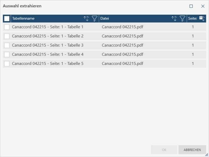 Klicken Sie auf die gewünschten Tabellen und wählen Sie OK aus.