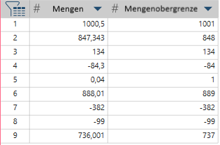 In diesem Beispiel ist die erste Spalte (Amount) die Originalspalte. Amount – Round Up sind die aufgerundeten Höchstwerte von Amount.