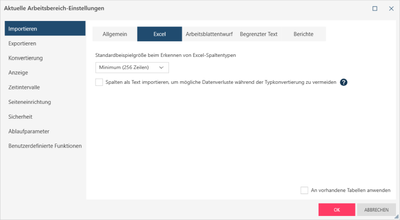 Unformatierte Werte aus Excel für numerische Spalten und Datumsspalten verwenden |