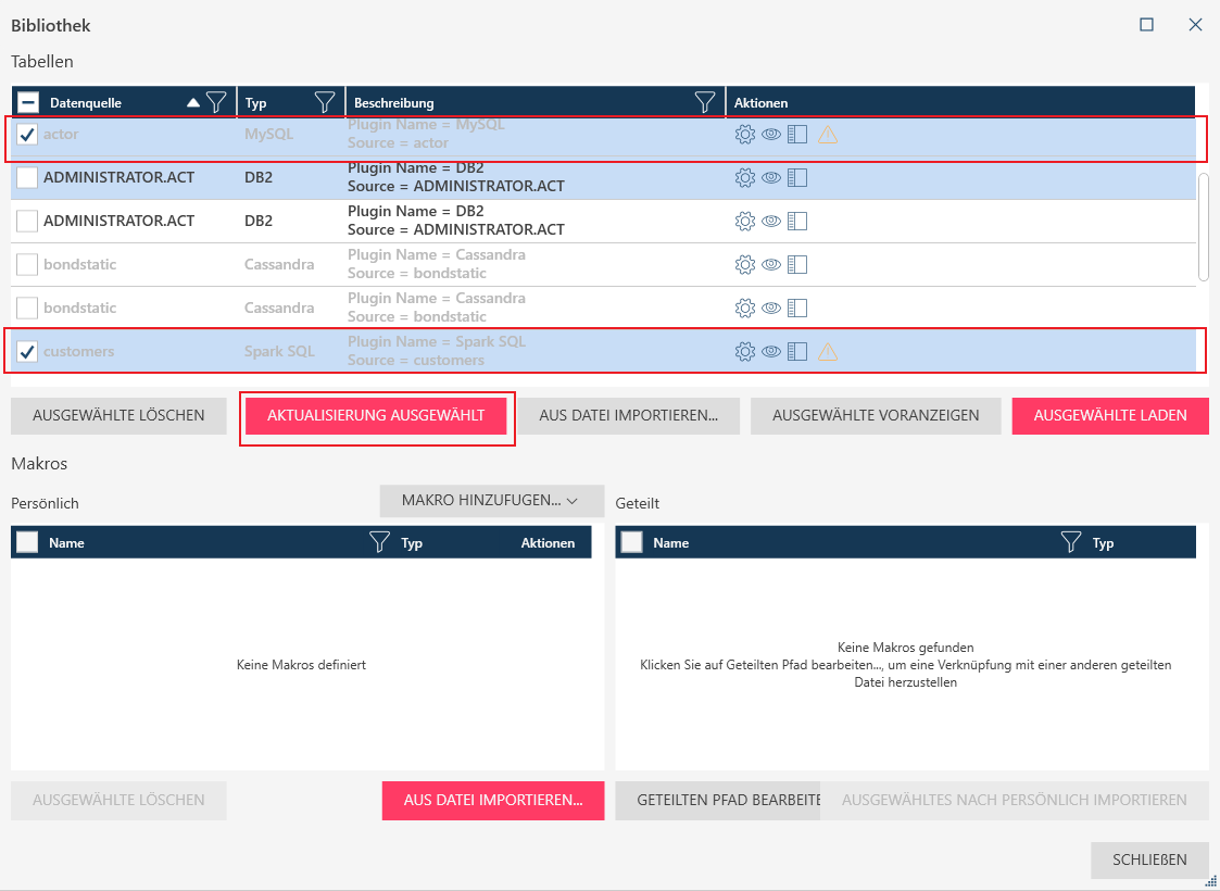 Aktualisieren Sie die veraltete Tabelle, indem Sie sie markieren und dann auf Auswahl aktualisieren klicken. Sie können mehrere Tabellen markieren und sie auf einmal aktualisieren.