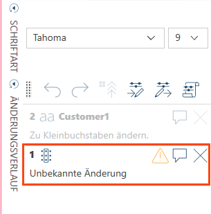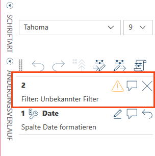 Hinweis: In einigen Fällen, wenn Sie beispielsweise einen in einer neueren Version der Anwendung erstellten Arbeitsbereich in einer älteren Version öffnen, könnten im Änderungsverlauf eine „Unbekannte Änderung“ oder ein „Unbekannter Filter“ angezeigt werden, wie unten dargestellt: