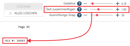 In diesem Beispiel wird ein kleiner Wert für die Textzusammenführung verwendet. Der Abstand zwischen MLS und #: ist ziemlich groß, weil die Zusammenführung von Text reduziert wird.