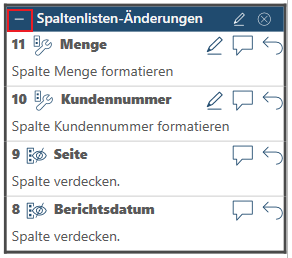 oben links neben einer Änderungsgruppe verdeckt bzw. erweitert werden.